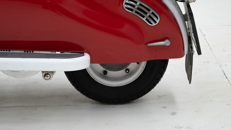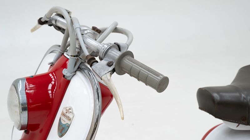 The 150D came only came in 2 colours Sand beige 8029 and a few examples from 1956 came in Light grey 8012. Engine and frame were once again painted in Aluminium Fiat 690.