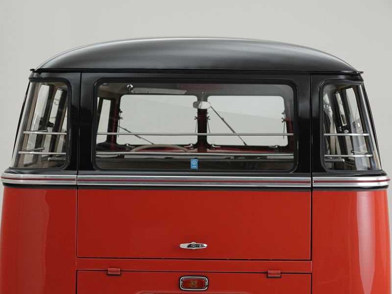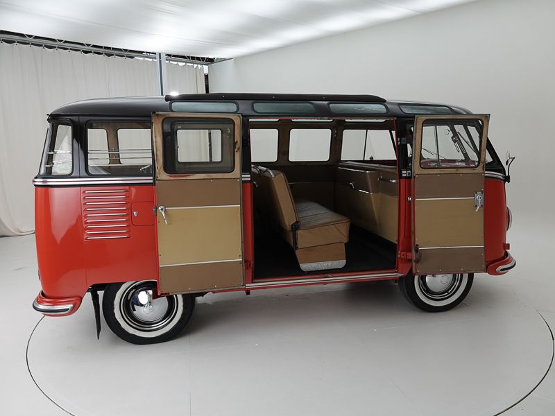 Ce magnifique bus T1 est particulièrement rare, et ce pour plusieurs raisons. Il s'agit de la toute première série produite dans l'usine de Wolfsburg. C'est le modèle haut de gamme avec 23 fenêtres et un toit Safari. Il est réalisé en deux couleurs. La série T de Volkswagen est toujours produite, ce qui témoigne de son succès durable. Cette première série est une icône de sa génération et est rapidement devenue le symbole de la génération flower power des années 60.