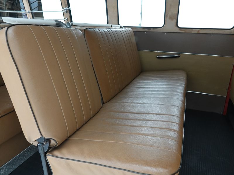 Étant donné la rareté et le bon état de l'intérieur d'origine, il a été décidé de ne pas restaurer l'intérieur, mais de le replacer dans son état d'origine. Contrairement à de nombreux autres modèles et marques, il existe peu d'alternatives disponibles pour Volkswagen permettant de remplacer l'intérieur par un neuf identique à l'original. Sous le capot se trouve aujourd'hui un moteur de 1200 cc avec 30 ch de Volkswagen, identique à l'original. Le moteur d'origine avec "matching numbers" a été révisé et est fourni avec le bus, mais n'est actuellement pas installé.
