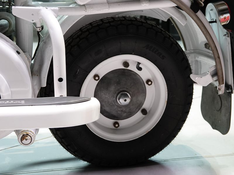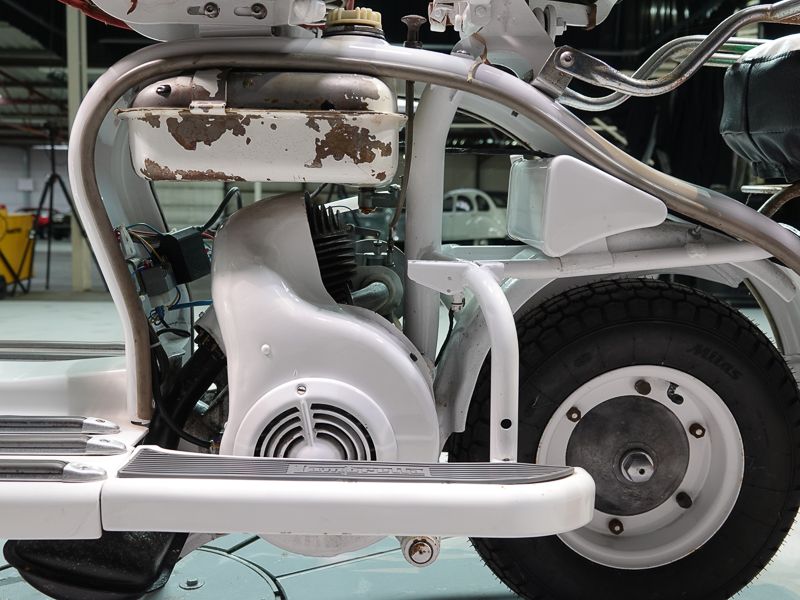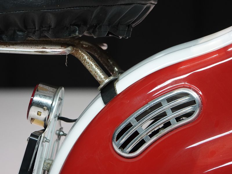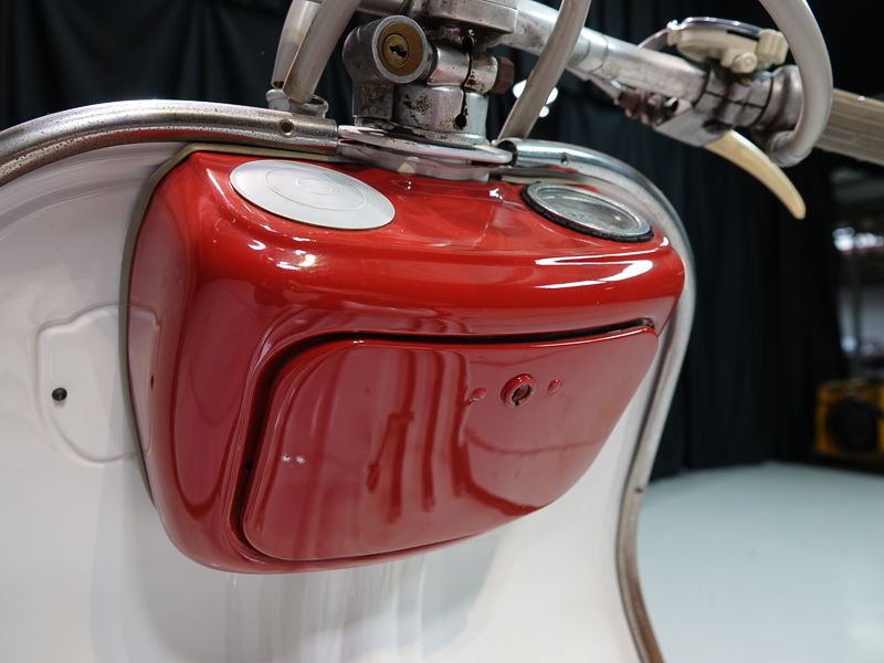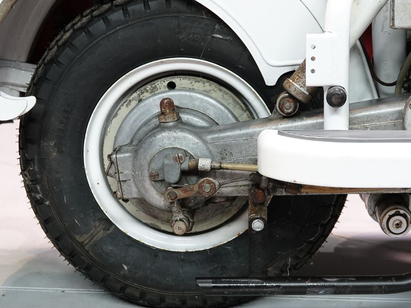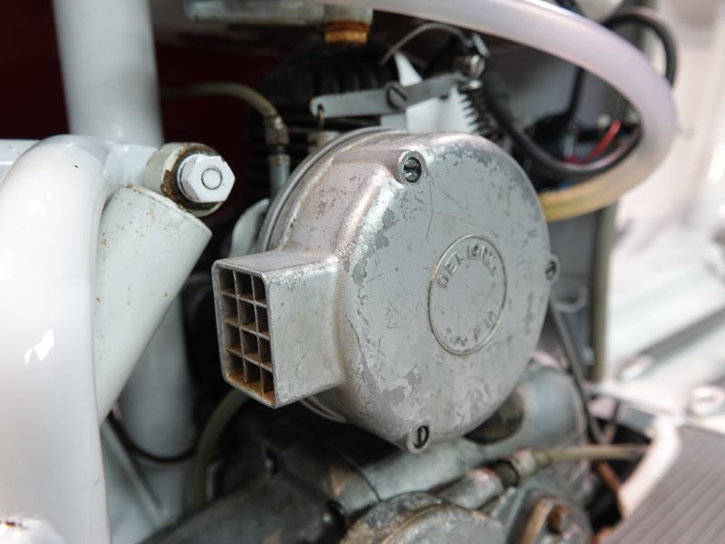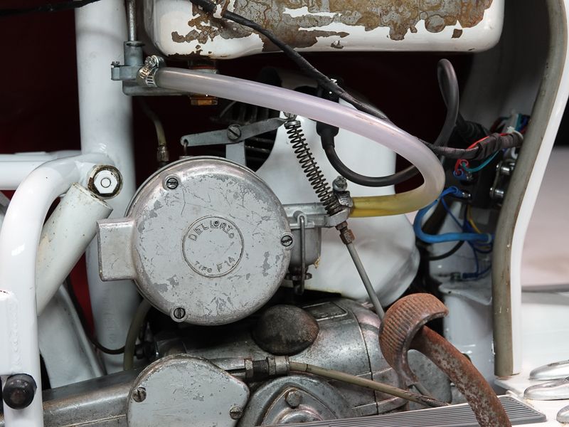 Le 150D n'existait qu'en deux couleurs : beige sable 8029 et quelques exemplaires de 1956 en gris clair 8012. Le moteur et le châssis étaient une fois de plus peints en aluminium Fiat 690.