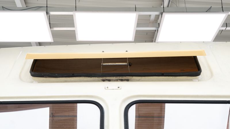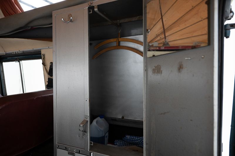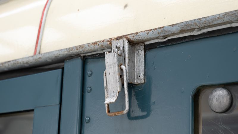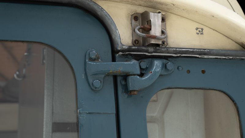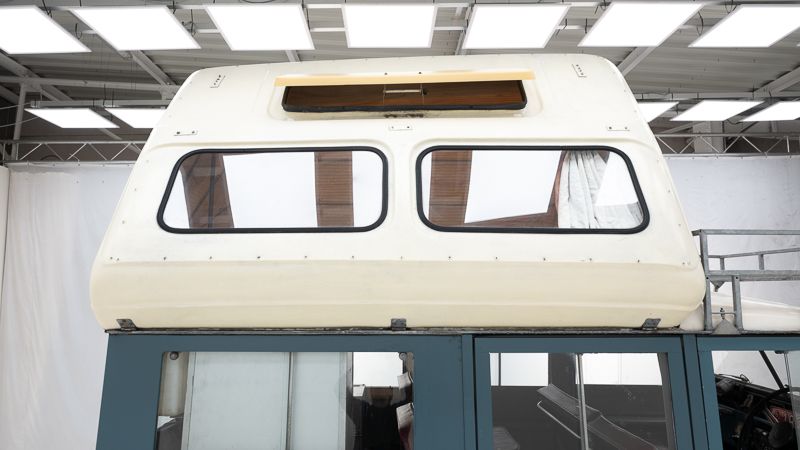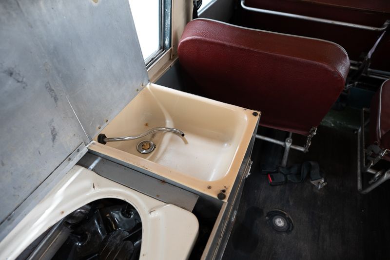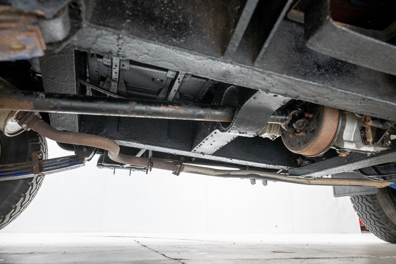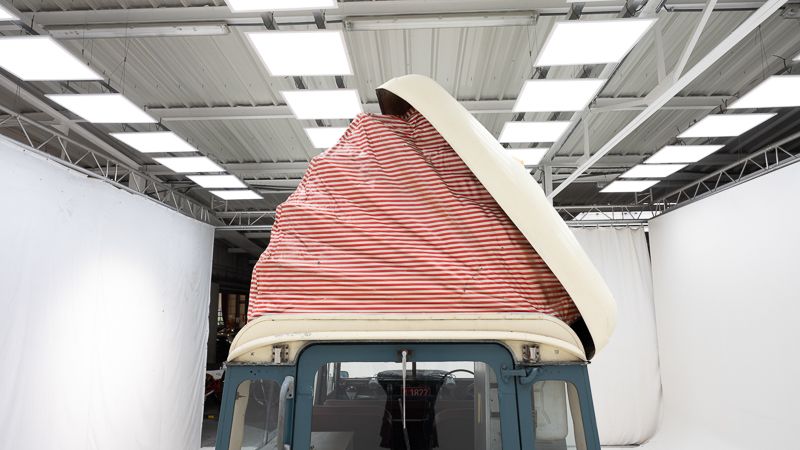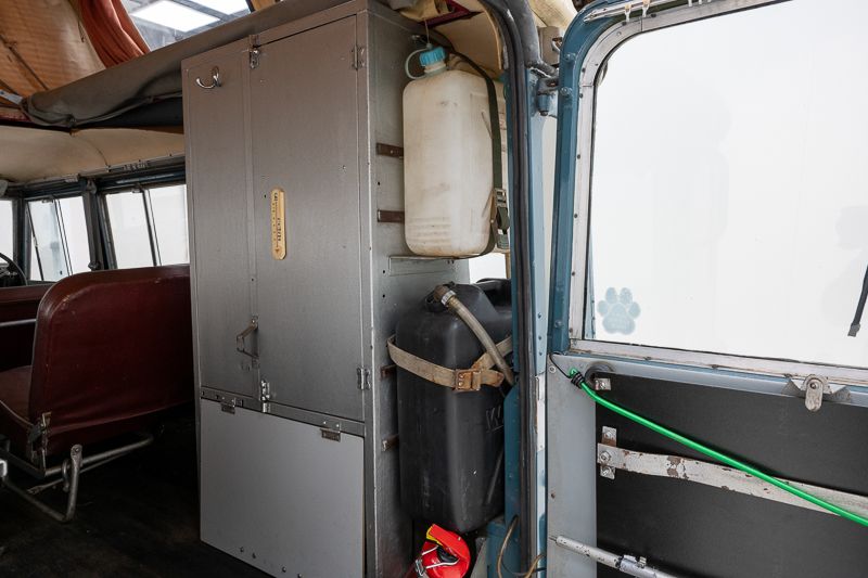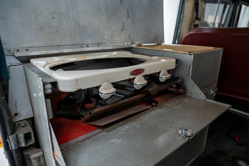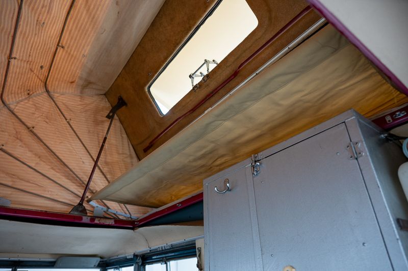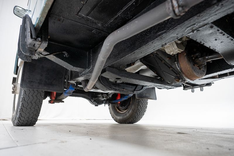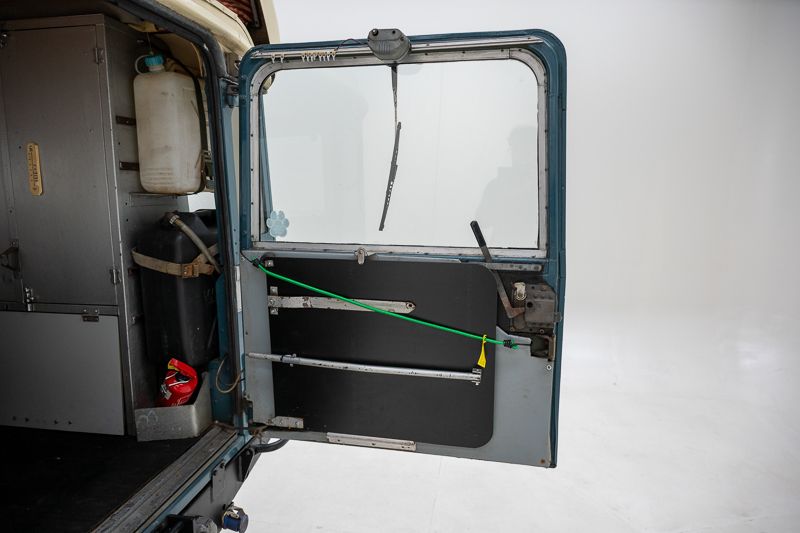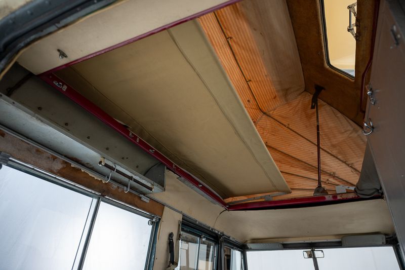 Le véhicule se présente dans un état d’origine, avec une patine marquée qui raconte son histoire et son vécu. La carrosserie Dormobile d’origine, combinée à l’empattement long (109 pouces), en fait un véhicule particulièrement attractif pour les amateurs de véhicules d’aventure classiques.