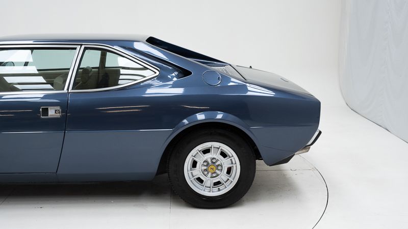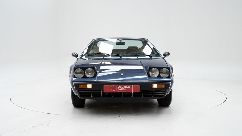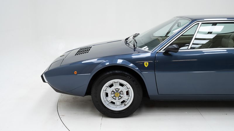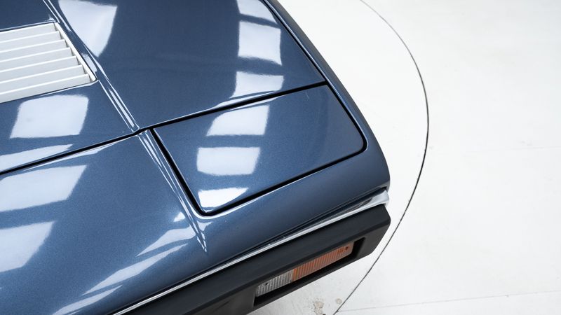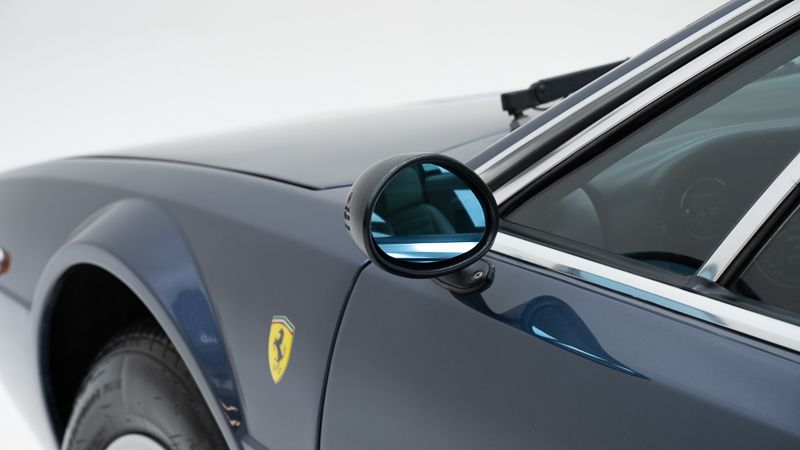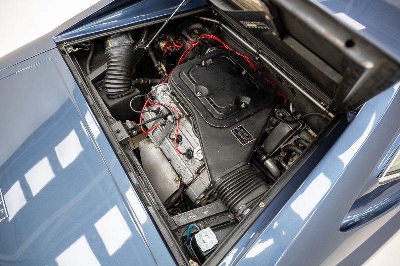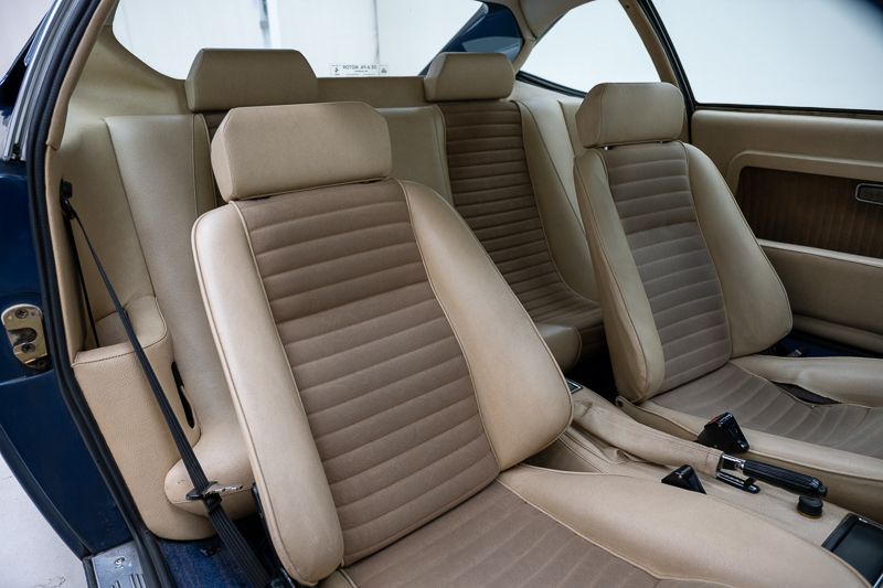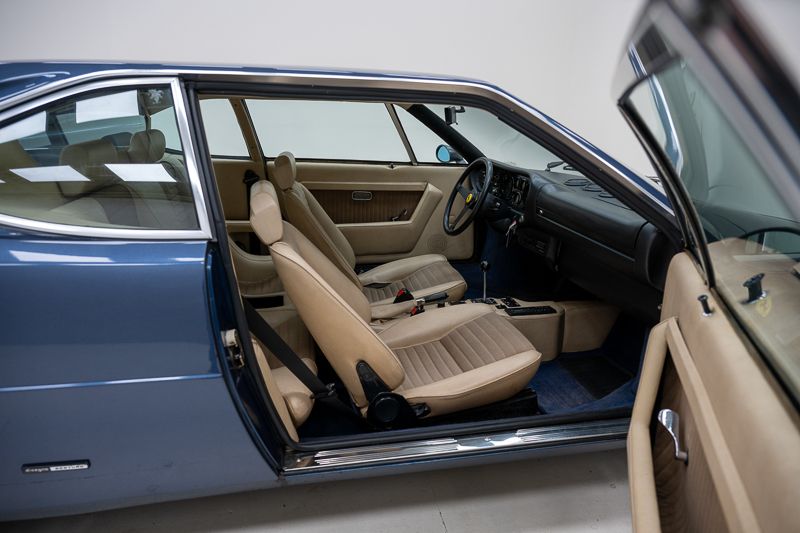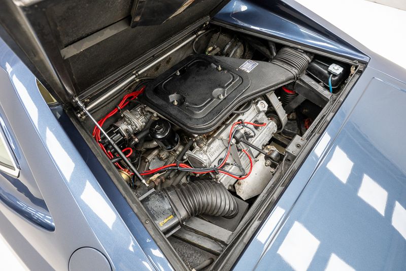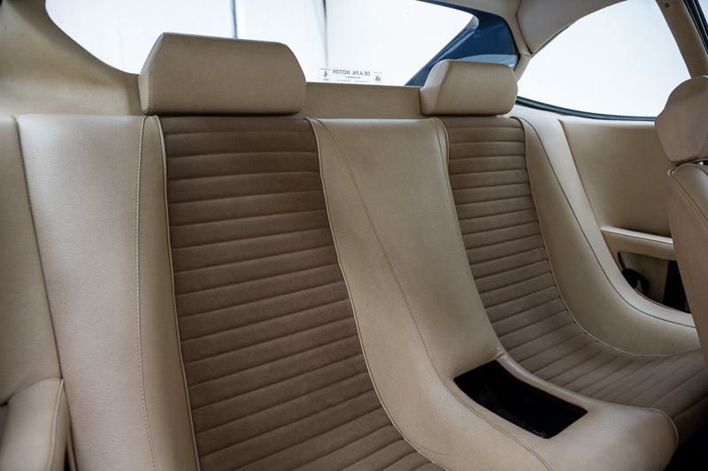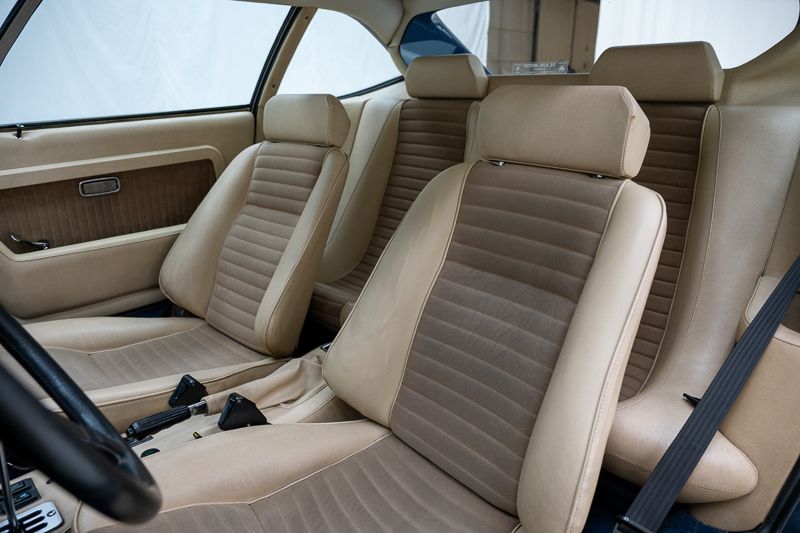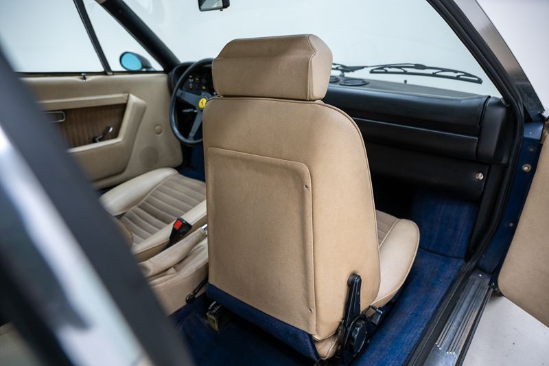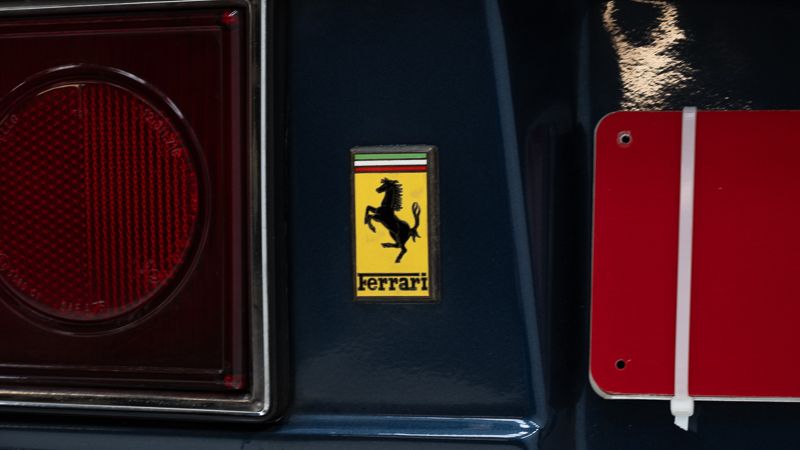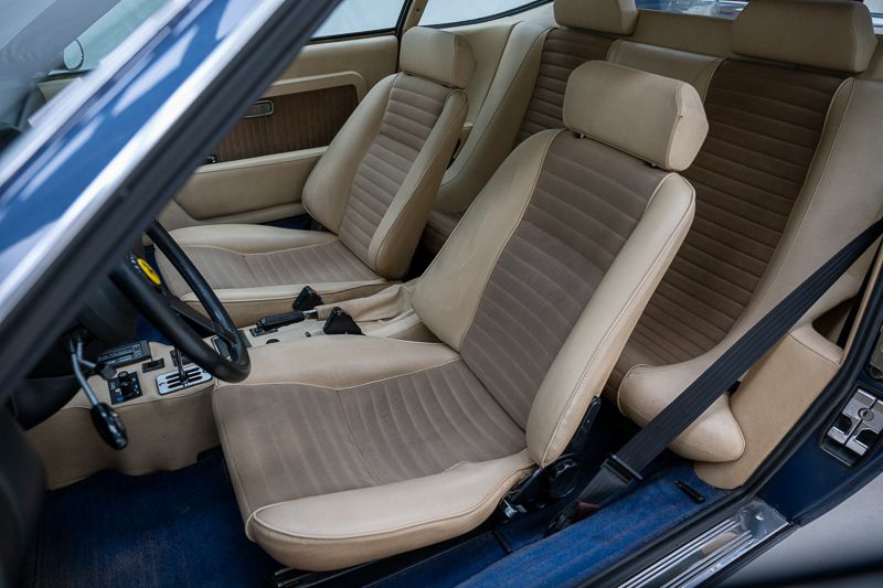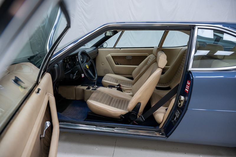 Cet exemplaire fut immatriculé pour la première fois le 01/01/1980 et se présente dans un état d’origine ancien. La carrosserie a été repeinte dans le passé et présente des traces d’utilisation cohérentes avec son âge et son caractère authentique. La couleur Blu Dino Metallizzato souligne élégamment les lignes de la GT4 et renforce son allure d’époque.