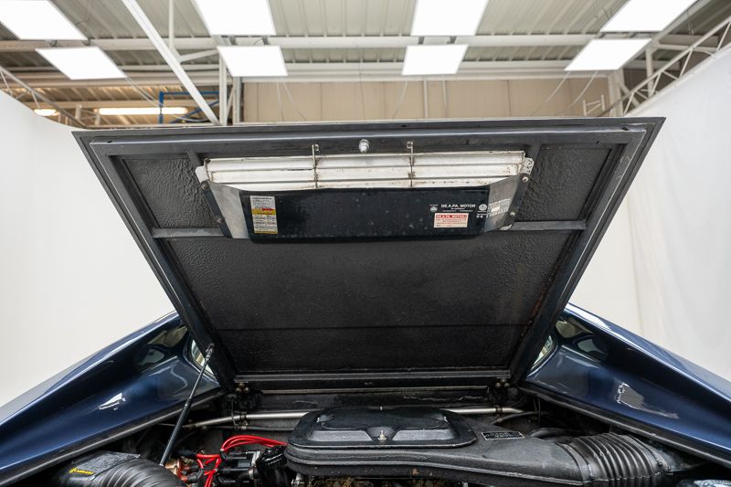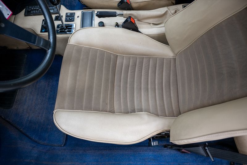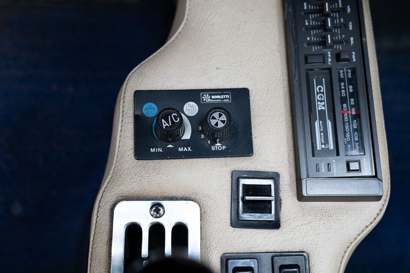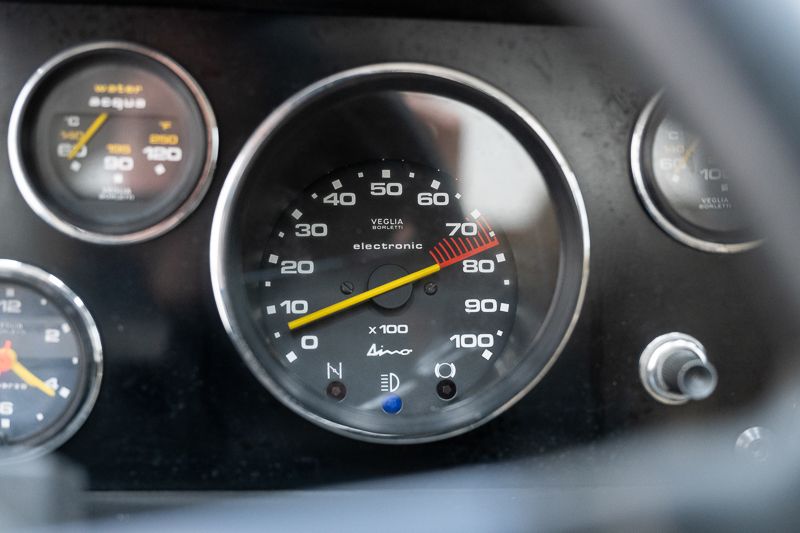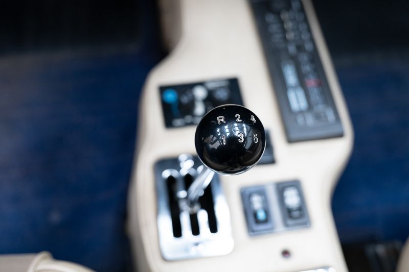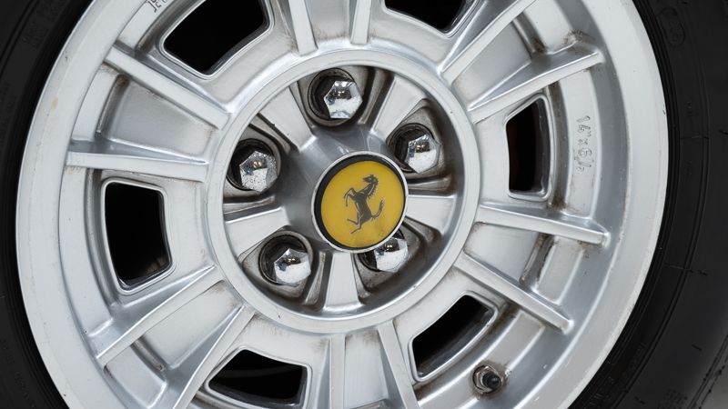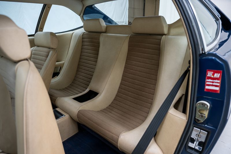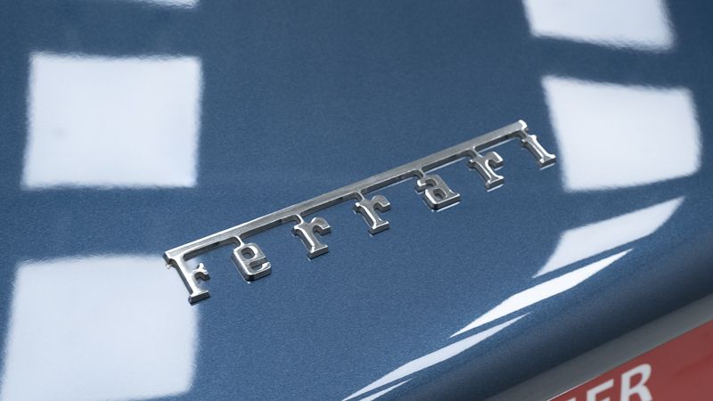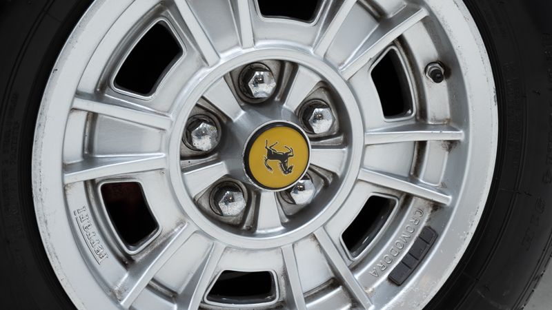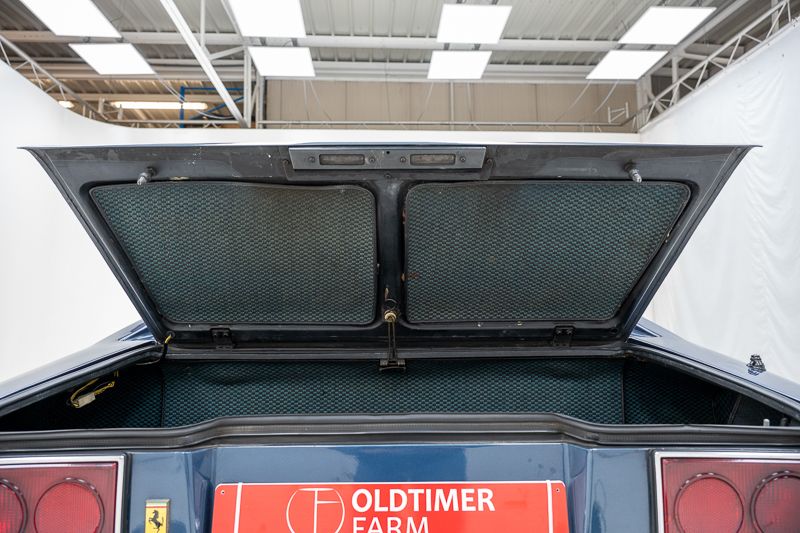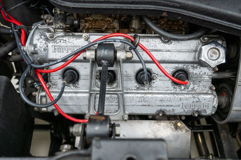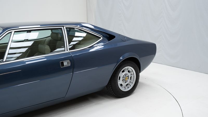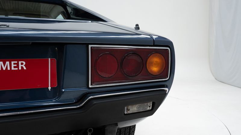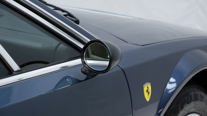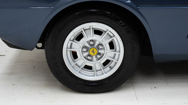 Cet exemplaire fut immatriculé pour la première fois le 01/01/1980 et se présente dans un état d’origine ancien. La carrosserie a été repeinte dans le passé et présente des traces d’utilisation cohérentes avec son âge et son caractère authentique. La couleur Blu Dino Metallizzato souligne élégamment les lignes de la GT4 et renforce son allure d’époque.