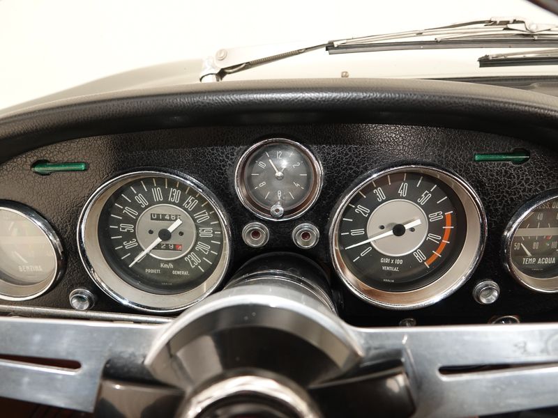 De Fiat 2300 S Coupé, hij lijkt enigszins bescheiden, maar dat is ie zeker niet. Met ongeveer 150 pk uit een zespitter met 2 Weber-carburators slaagt ie erin om een snelheid tot 190 kilometer per uur te bereiken. Sneller dan een Porsche 912, een van de snelste GT’s van de sixties en daarom geenszins zo bescheiden als ie van buitenaf doet vermoeden.