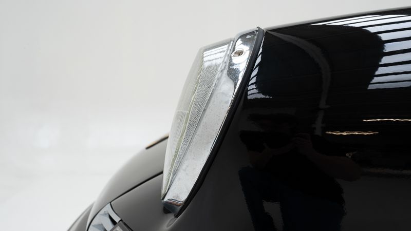Wat dit exemplaar extra bijzonder maakt, is de stijlvolle en tijdloze kleurencombinatie van zwart exterieur met fauve (cognac) lederen interieur — een warme, bijna natuurlijke ledertint die perfect contrasteert met het koetswerk en zorgt voor een zeer elegante en luxueuze uitstraling.