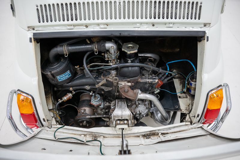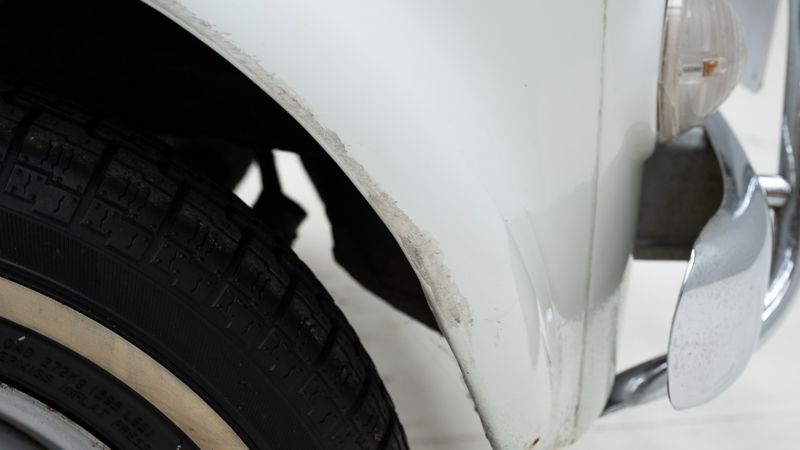 Dit exemplaar uit 1970 kan beschouwd worden als een oudere professionele restauratie en bevindt zich deels in een te restaureren staat. De carrosserie werd in het verleden herlakt en vertoont vandaag sporen van gebruik, krassen en plaatselijke roestplekken, passend bij het eerlijke karakter van de wagen. Het lakwerk toont beschadigingen maar presenteert zich nog correct.