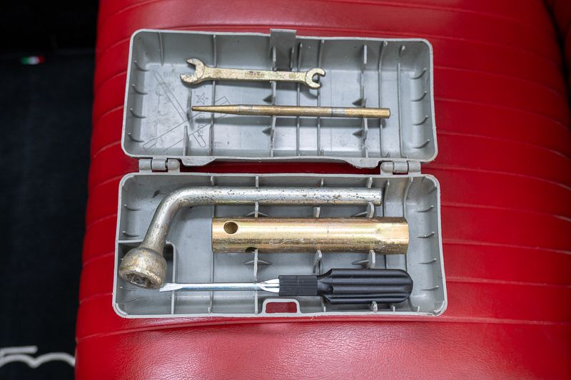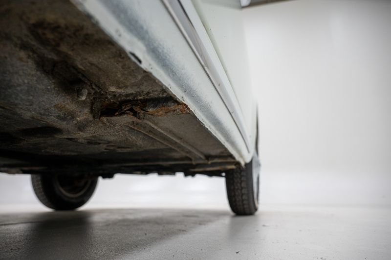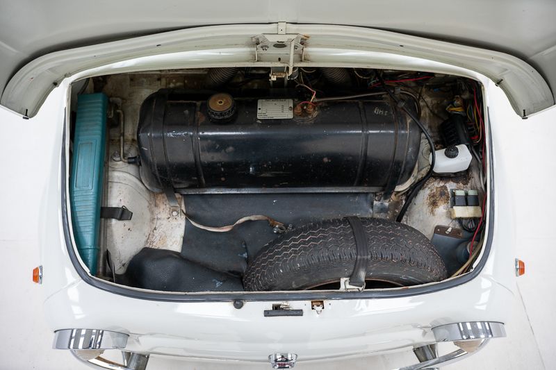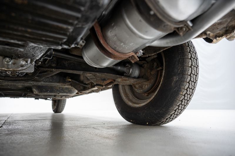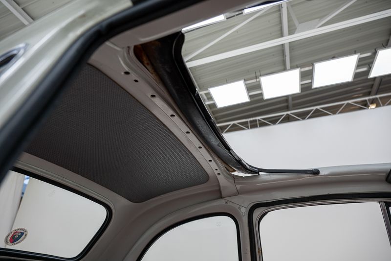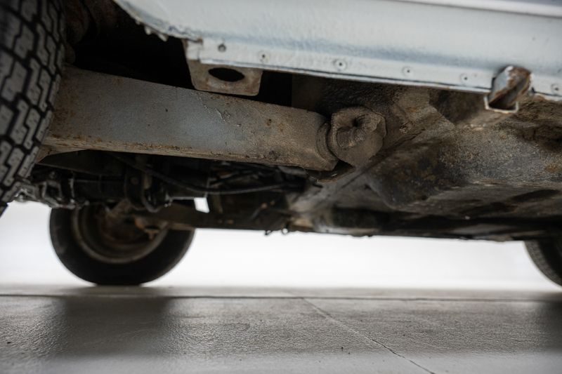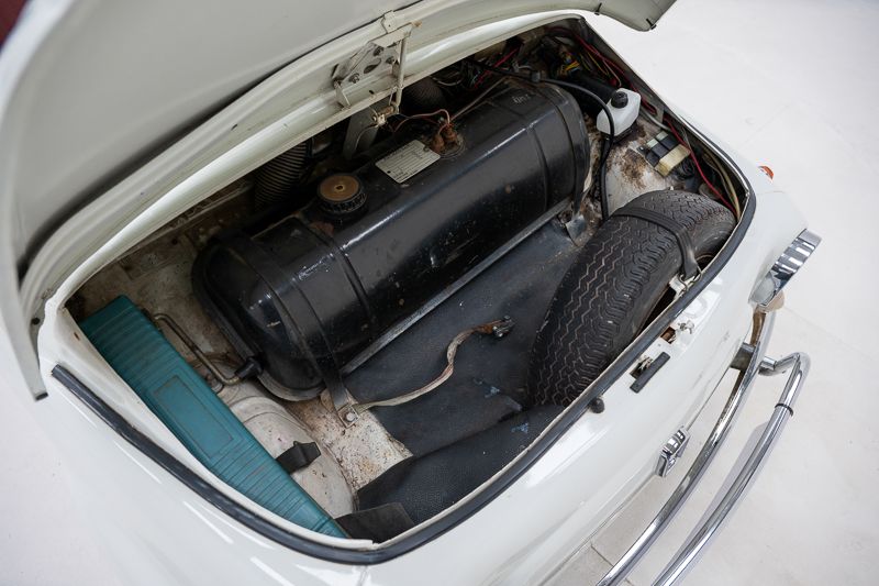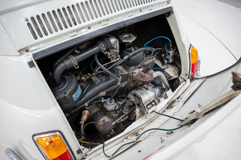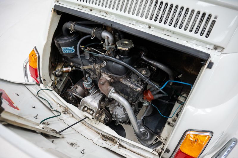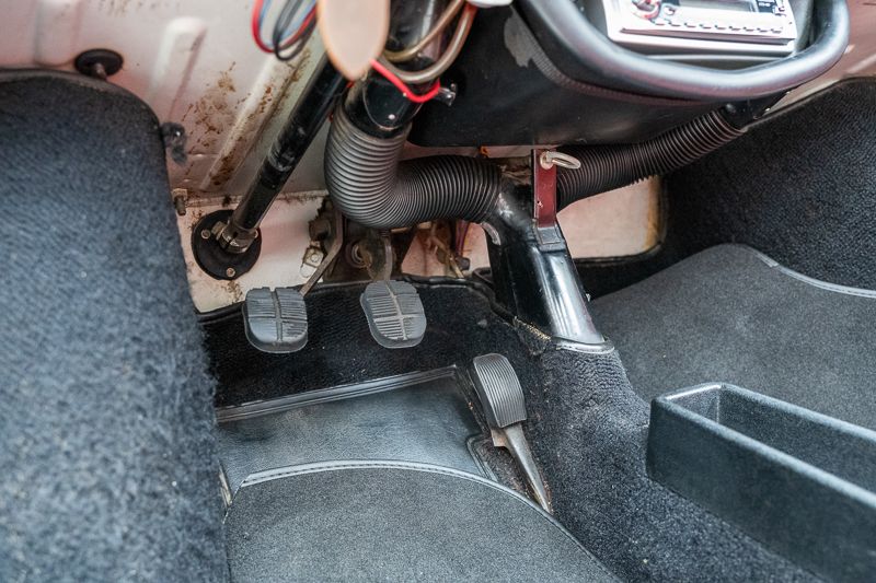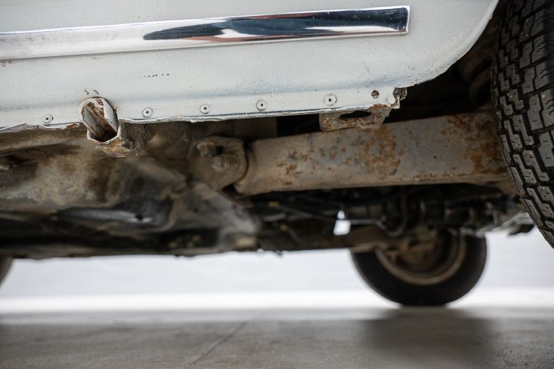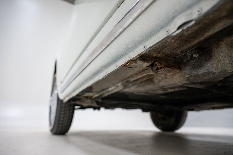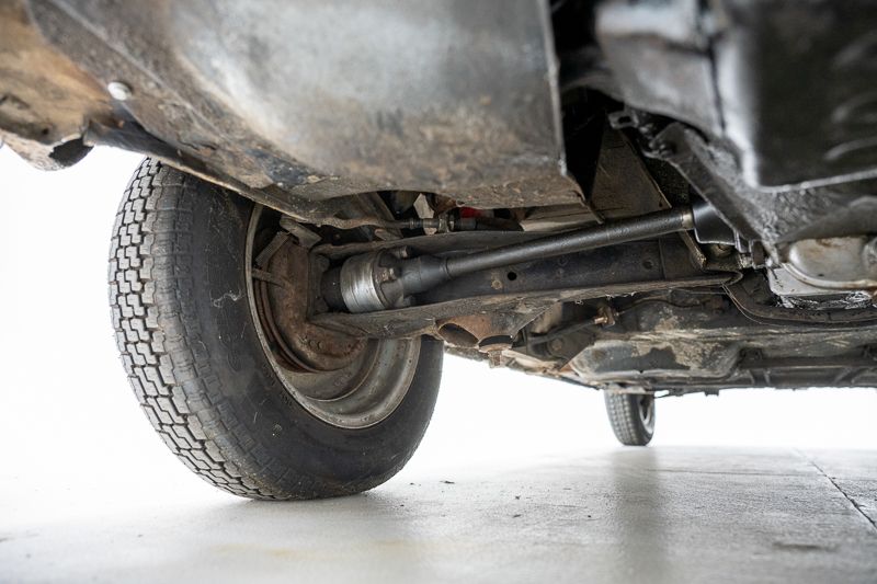 Het interieur is mooi en gerestaureerd en vormt een aangenaam contrast met de meer gebruikte buitenzijde. De onderzijde is zeer vuil en vertoont oppervlakkige roest, met laswerk aan de bodem en duidelijke vetsporen, maar biedt een transparante basis voor verdere aanpak. Het chassisnummer is aanwezig en correct gecontroleerd.